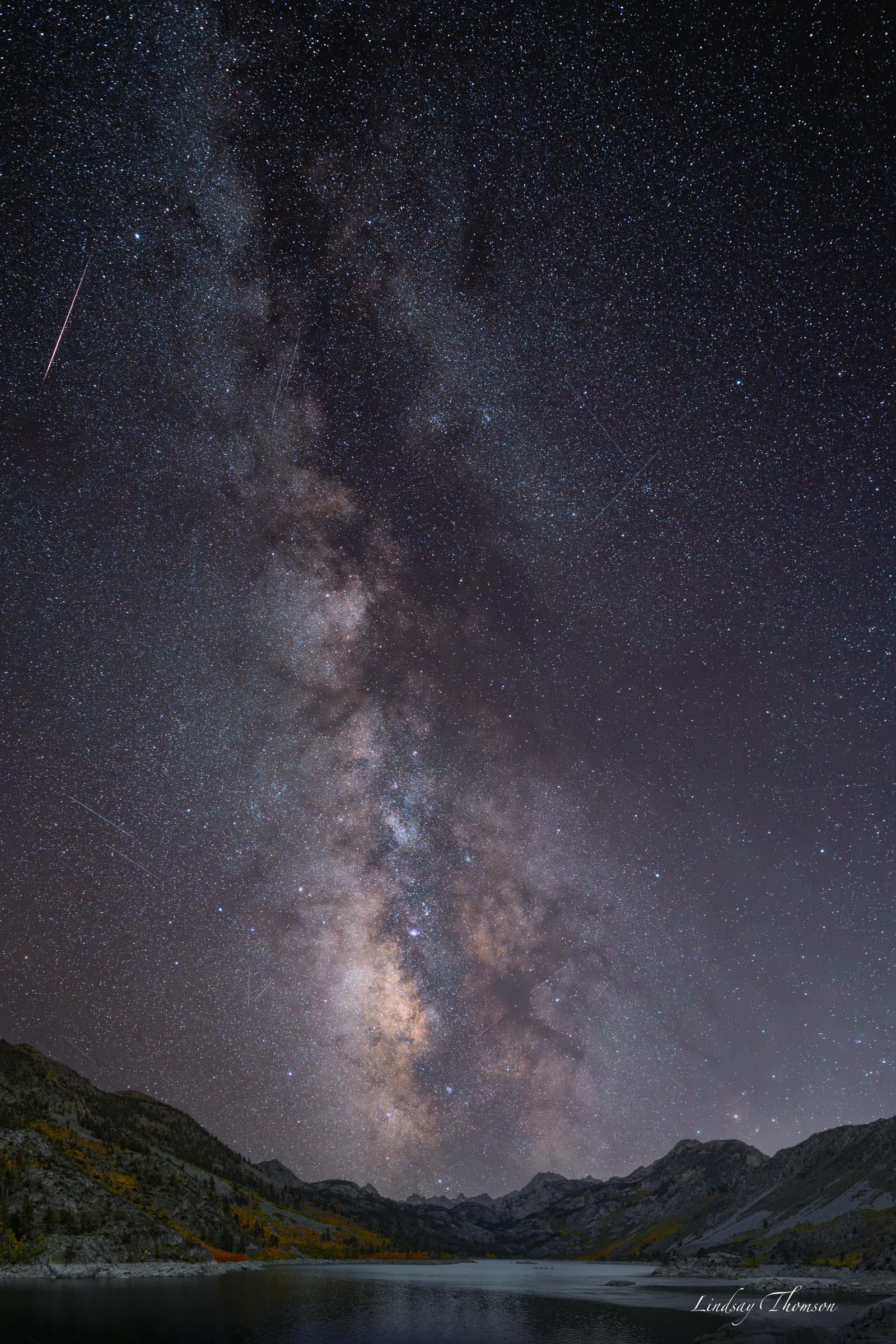 Lindsay Thomson: Milky Way and Meteor over Lake Subrina